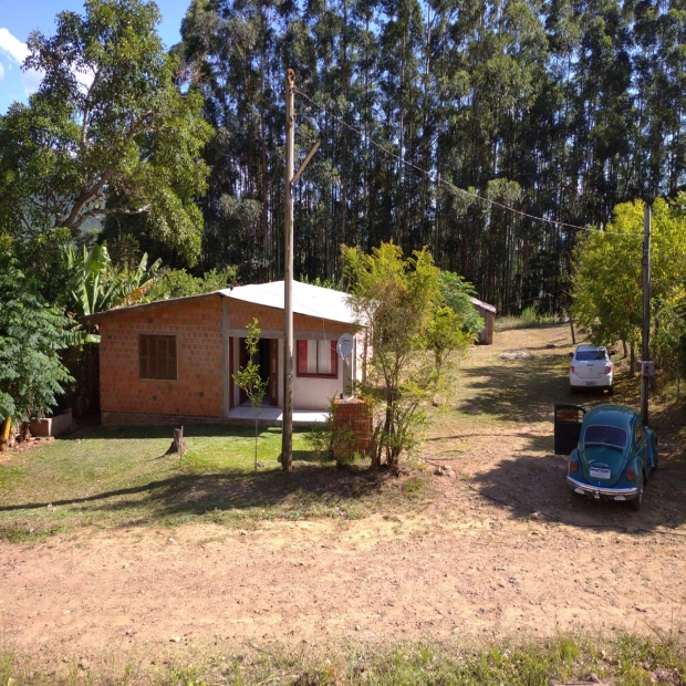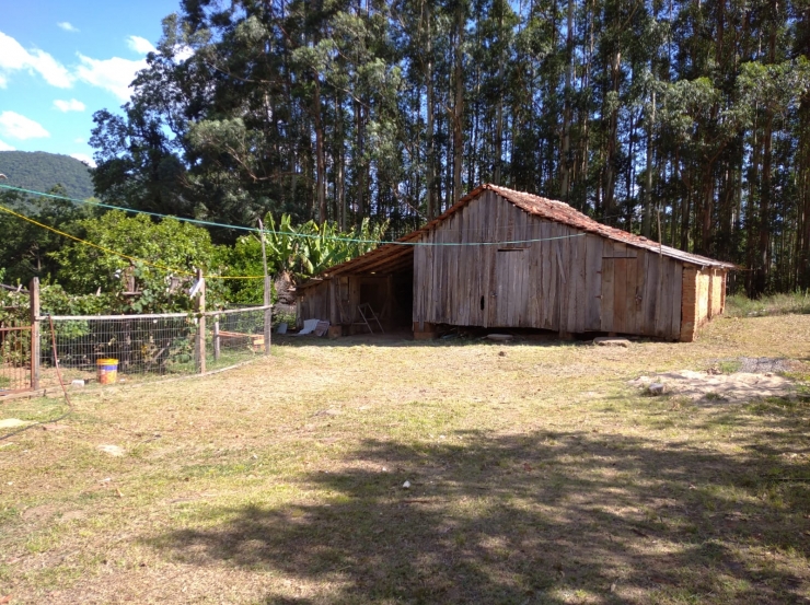 Área de terra de 8,0 hectares, com casa de alvenaria de 110m², 03 quartos, sala, cozinha, banheiro, galpão de madeira de 200m², chiqueiro, água de vertente. Localizada na Linha das Flores, a 09km da cidade de Agudo.